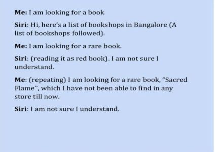 The second instance was different. I was looking for a rare book — a book of plays by Somerset Maugham that I had been unable to find online and in many bookshops. Here’s a gist of my conversation with Siri, the intelligent personal assistant that I turned to for help.