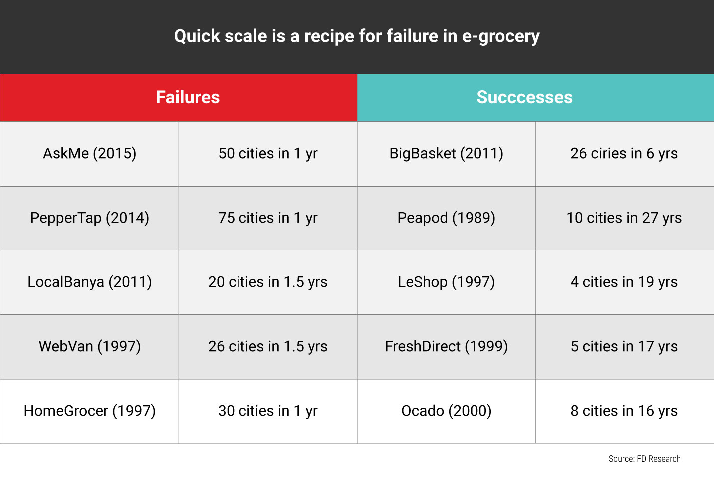 More than two dozen companies in India wanted to be clones of Instacart. Most of them had a slow death, without being able to raise more funds — LocalBanya, Atmydoorstep, and PepperTap were a few of them. Others dabbling in the business too burnt their fingers: Ola stopped delivering grocery and Paytm shut down Zip.
