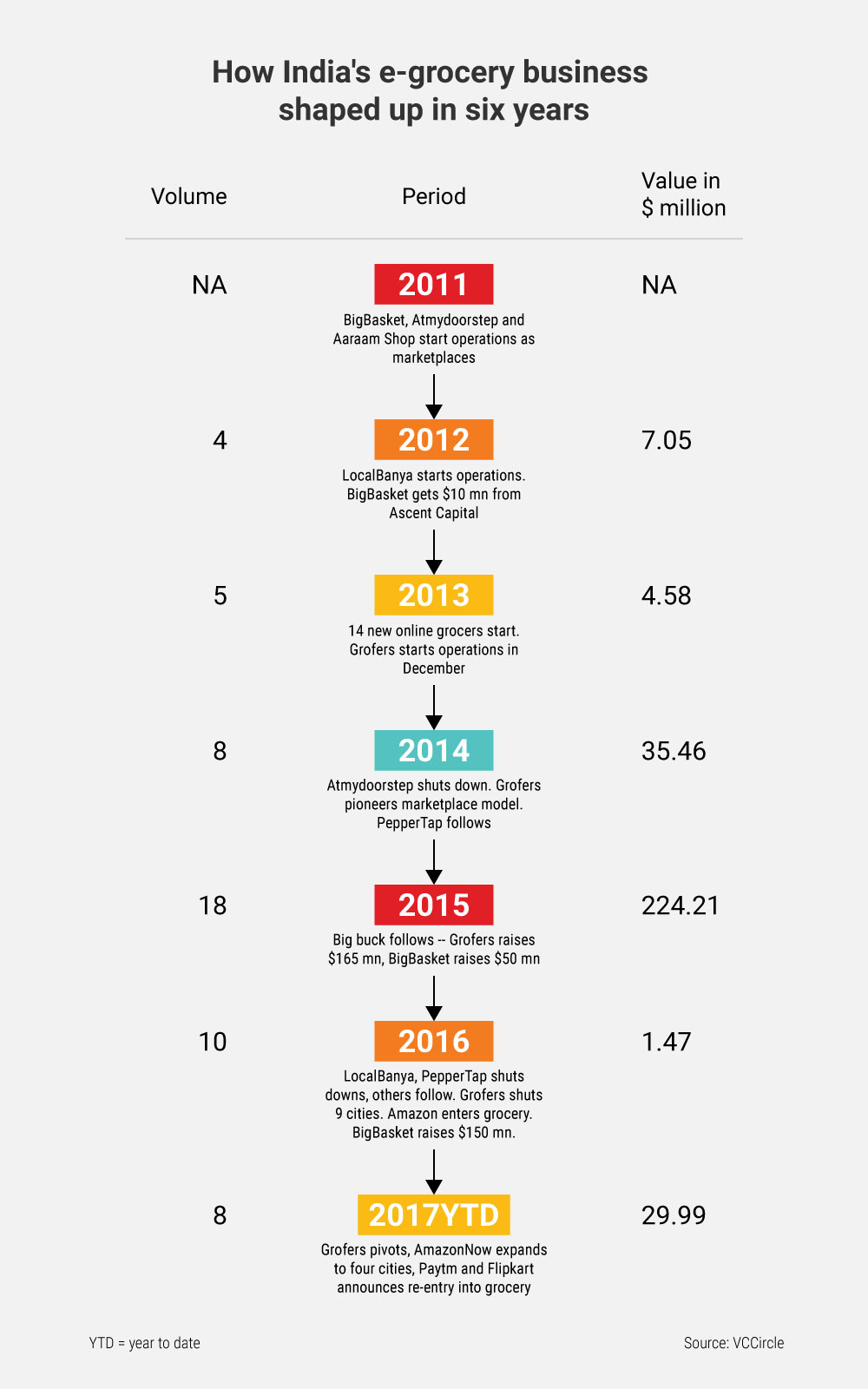 “Amazon is a large player… Some changes are happening. Investors and e-grocers are taking notice, but Amazon takes its own time to analyse and expand in the market,” says a founder of one of the e-grocers that started in 2011, who does not want to be named.