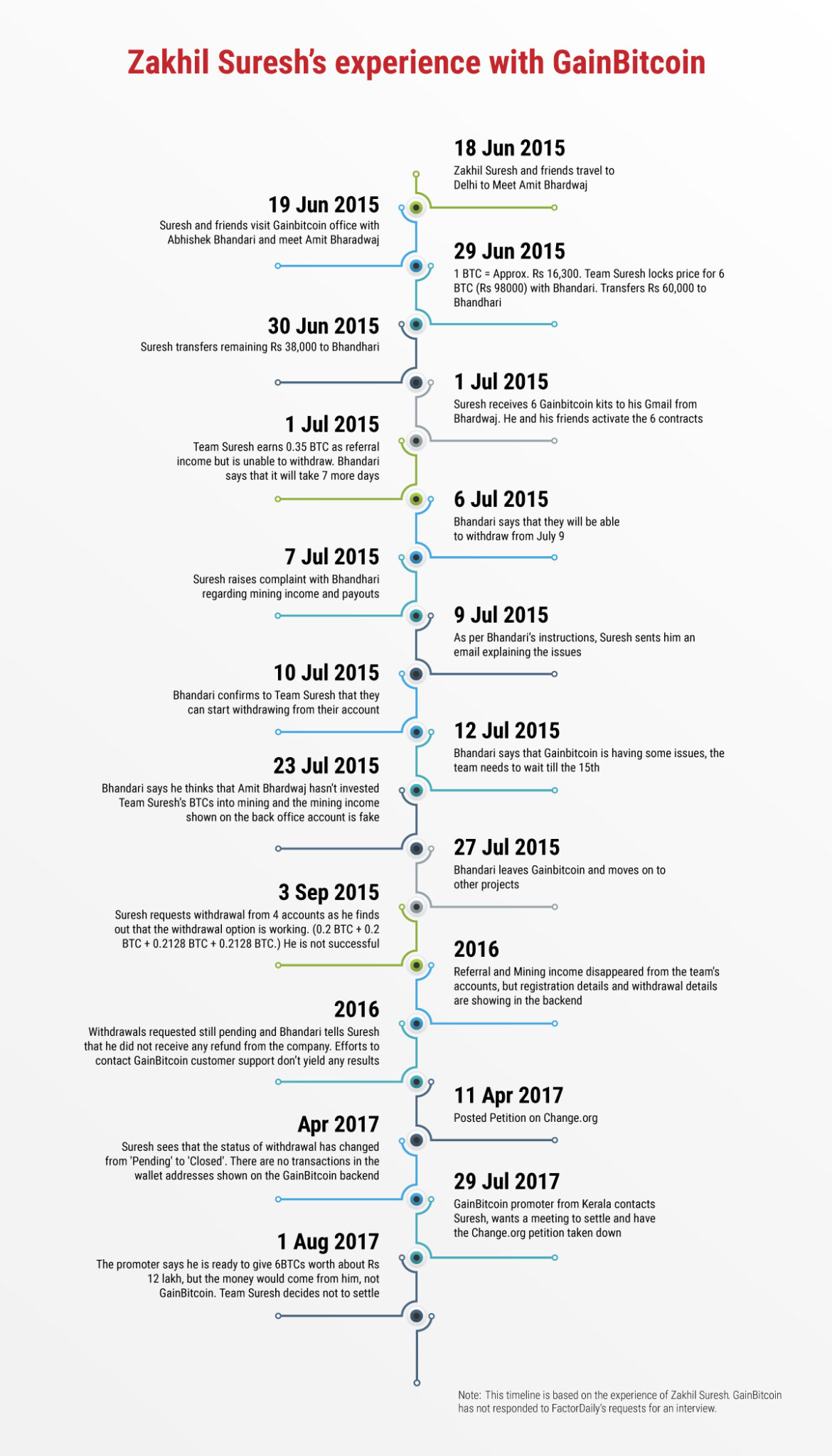 FactorDaily has verified every part of Suresh’s experience with GainBitcoin asking him for and verifying proof at different points in his interactions with the company and Bhardwaj. Still, it is possible that there will be angles and nuances that Bhardwaj and GainBitcoin may differ on — both in Suresh’s instance and the company’s operations. Like we said earlier, we will update this story if and when we hear from them.