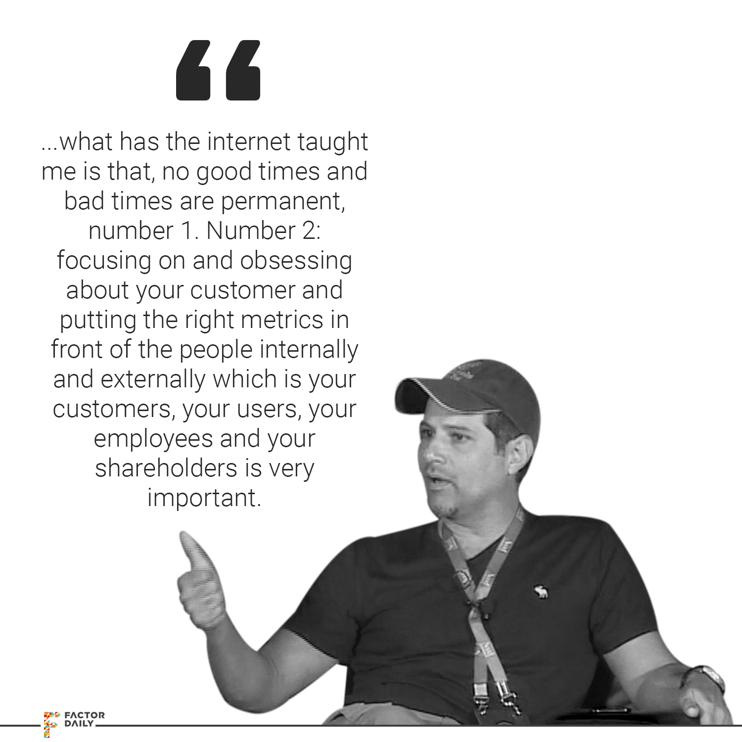 Pankaj: And you have seen the dotcom bust, Lehman crisis, you seem to have gone through a very different curve altogether. What has internet in India taught you? What have you learnt from internet since then to now? What are all the key lessons?
