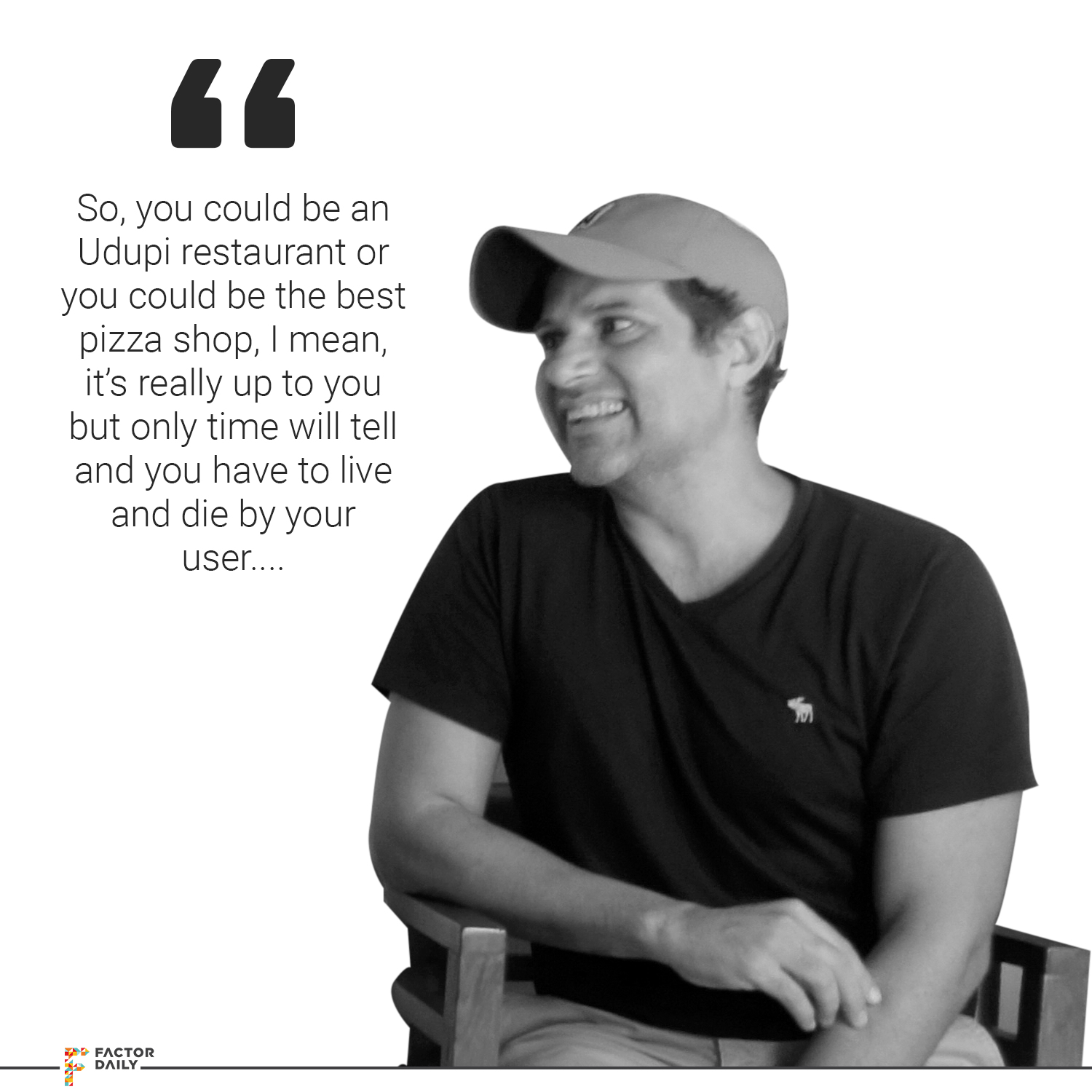 And can you get new users by coming up with product categories which you don’t have today in your arsenal and you engage with them and acquire and engage and build same frequencies with that and then eventually cross-sell what your core business today is… and it’s all about building that pipeline over a period of time and making a 360 plain entertainment. Now, if that is valuable to users where they think they need to come to you every day and they like what they see, they are seeing value in that, then whether you are niche or you are not, shouldn’t really matter because if today there’s a restaurant called Nobu. He still has a three day reservation lying outside because it is the best restaurant you ever went to or that guy in Italy that sells you a pizza or a guy in the US who sells you pretzels and you are still lining up for that and you could say, ‘listen, I should order five hundred items on my menu’ like an Udupi restaurant where you can be Chinese, Indian, Punjabi , anything, I mean anything under the sun, any cuisine will be there or you say, ‘listen, I am going to be obsessed about something that I want to do’, so there are two clear strategies. So, you could be an Udupi restaurant or you could be the best pizza shop, I mean, it’s really up to you but only time will tell and you have to live and die by your user…. The two of us are sitting here, the third chair should be the user, the customer’s chair and if the customer likes this conversation, the customer believes in this conversation, the customer thinks, ‘Hey listen, there is value to what I am getting, you have no reason to worry’.