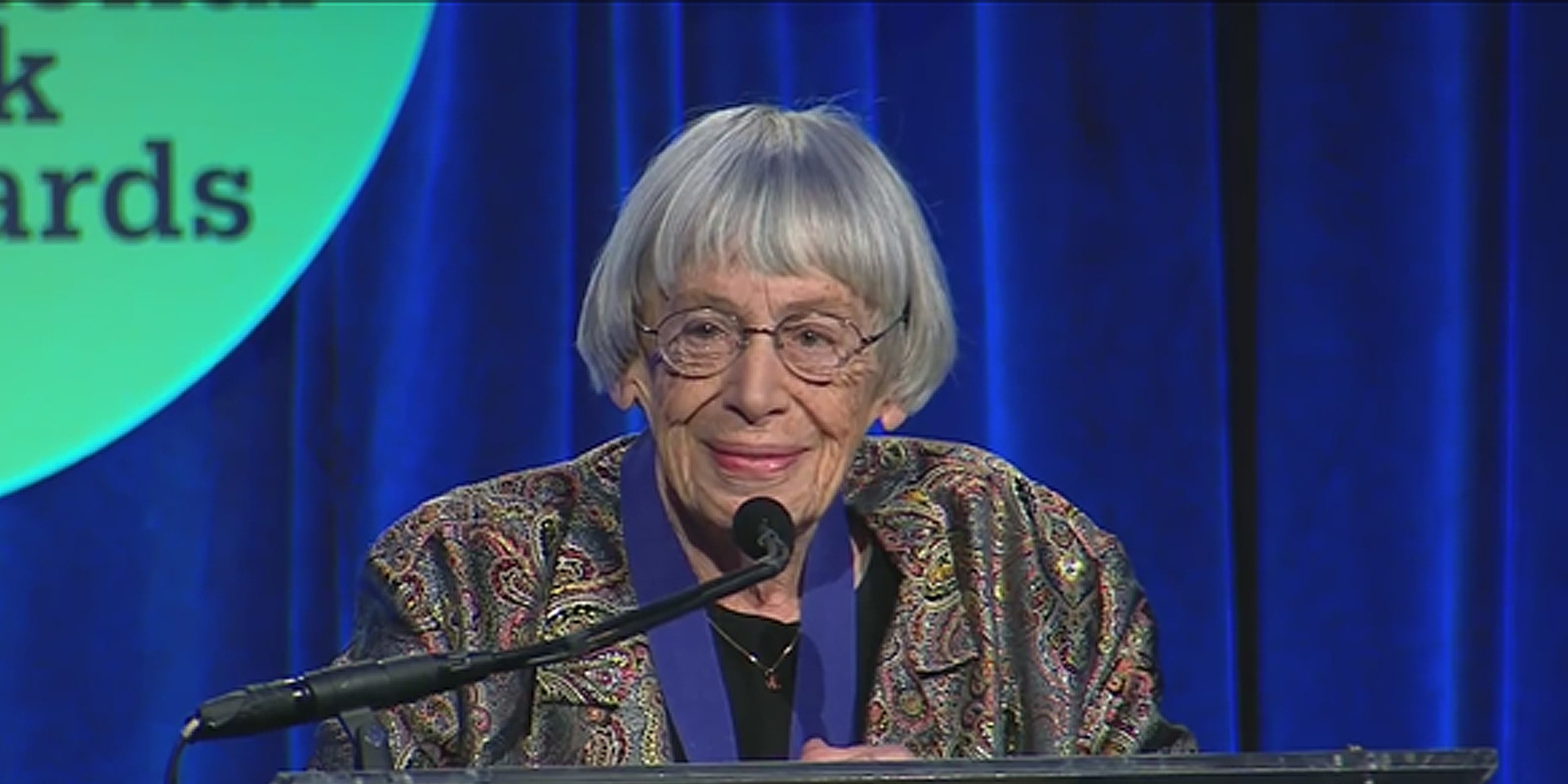 In 2014, while giving her acceptance speech at the National Book Awards after receiving – from one of her biggest fans and admirers, Neil Gaiman – the Medal for Distinguished Contribution to American Letters, Le Guin noted that sales departments were given control over editorial, and that her own publishers in a silly panic of ignorance and greed, charging public libraries for an ebook six or seven times more than they charge customers. Bemoaning the state of publishing and book-selling, she said, “The profit motive often is in conflict with the aims of art. We live in capitalism. Its power seems inescapable. So did the divine right of kings. Any human power can be resisted and changed by human beings. Resistance and change often begin in art, and very often in our art — the art of words.”