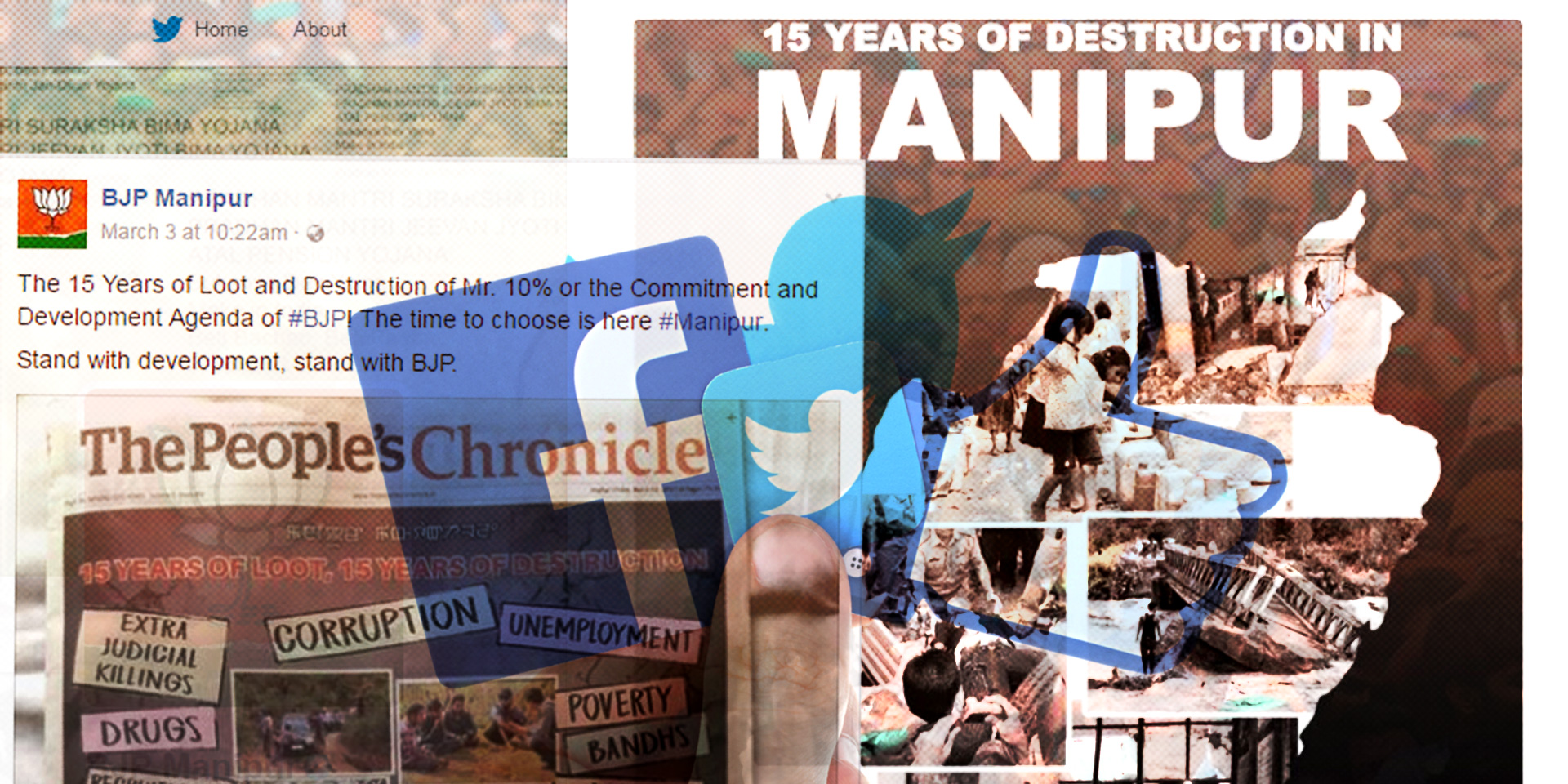In November 2016, BJP kicked-off a high-pitched social media campaign in Manipur on more than 100 WhatsApp groups, a number of Facebook pages, Twitter handles and Twitter channels
