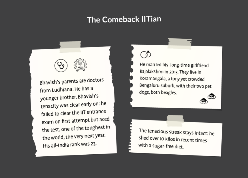 Aggarwal, who signs his name as Bhavish, lives in Bangalore’s startup hub, Koramangala in an upscale apartment complex that overlooks a busy intersection, with one of Flipkart’s old offices across the road. Aggarwal, who married his long-time girlfriend Rajalakshmi in early 2014, does not own a car. Every morning, when he’s in Bengaluru, he takes an Ola cab to reach work.