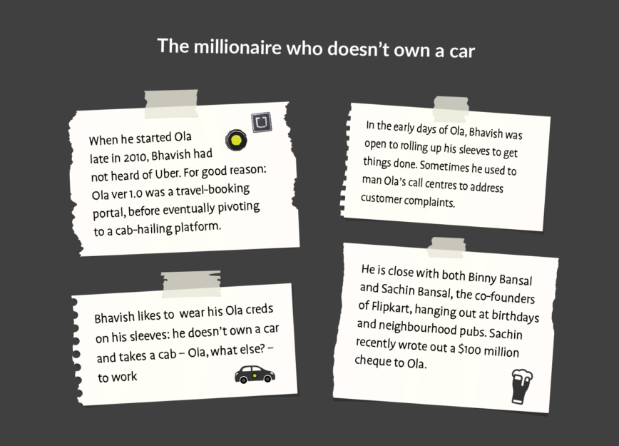 “Bhavish is a total warrior, one who will go to any lengths to succeed. In that sense, he’s very different from the Bansals at Flipkart, especially Sachin, who backs his own big-picture tech vision and is not as ruthless,” said one executive who has worked closely with Aggarwal and also is friends with both Bansals.