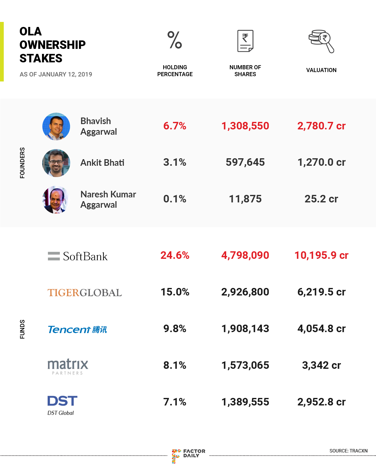 The top equity holdings in ANI Technologies, which owns the Ola group