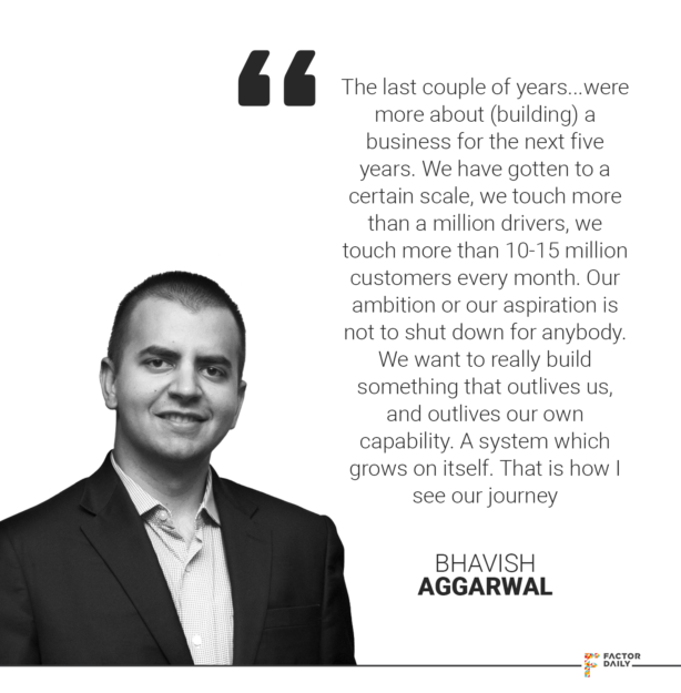 “The last couple of years…were more about (building) a business for the next 5 years. We have gotten to a certain scale, we touch more than a million drivers, we touch more than 10-15 million customers every month. How can we now institutionalize some things and make the business more sustainable, make the organisation more sustainable? Our ambition or our aspiration is not to shut down for anybody. We want to really build something that outlives us, and outlives our own capability. A system which grows on itself. That is how the last couple of years have been. That is how I see our journey,” said Aggarwal in the chat.