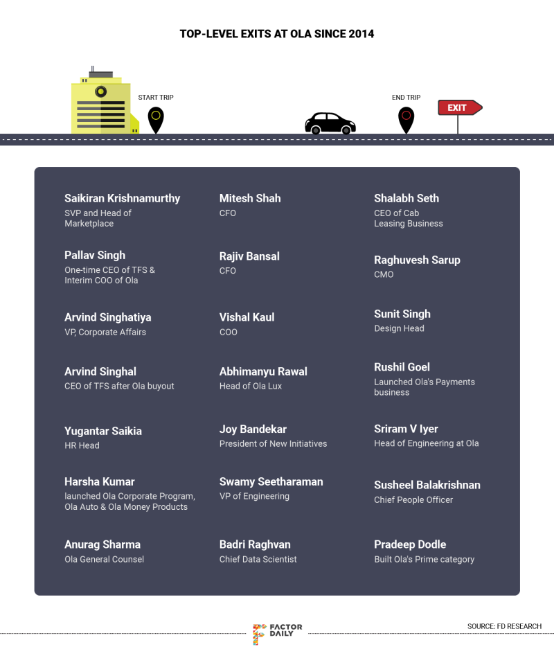 As FactorDaily reported earlier, Krishnamurthy’s presence is part of a broader problem at Ola — the problem of an untenable workplace. Ola under Aggarwal has been obsessed about Uber ever since its entry into India in 2013 — in doing so Ola’s workplace culture, while nowhere as toxic as Uber, has turned into a version of the Silicon valley-based cab-hailing giant. “There’s nothing unusual,” a founder of one of India’s top 10 startups had told us in our ‘Ola’s Culture Problem’ story. “The gig economy has its stresses.”