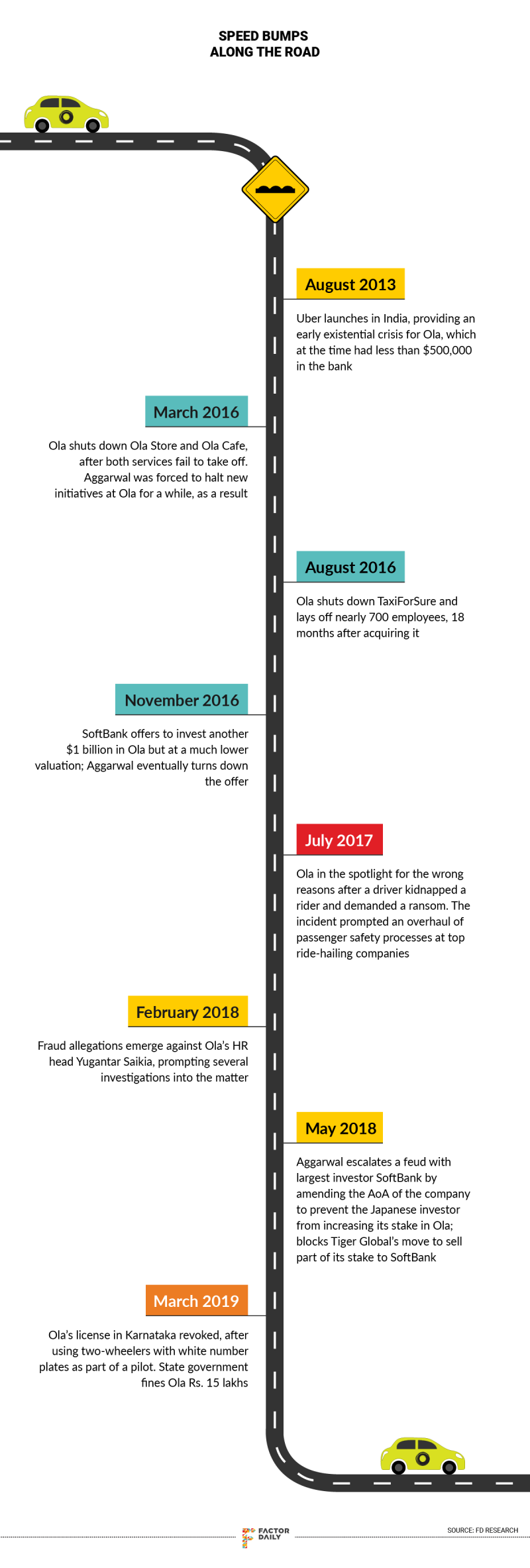 Aggarwal has come a long way since the early days of Ola, when he was a green-behind-the-ears, rookie founder. In many ways, his earliest meetings with potential investors helped shape him into a tough-as-nails, no-nonsense, thick-skinned founder, say people aware of his thinking.