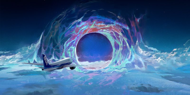 At 4:58am on June 28th, 2017, the passengers on board ANA Flight 008, en route from Tokyo to San Francisco, are cruising at an altitude of 37,000 feet, approximately 1,500 nautical miles off the West Coast of the United States. A small bump, otherwise noted as a barely perceptible bout of turbulence, passes Flight 008 through a temporary wrinkle in the local region of space-time. What these passengers will soon find out as they descend into SFO is that the wrinkle has transported them 20 years in the future, and the year is now 2037.