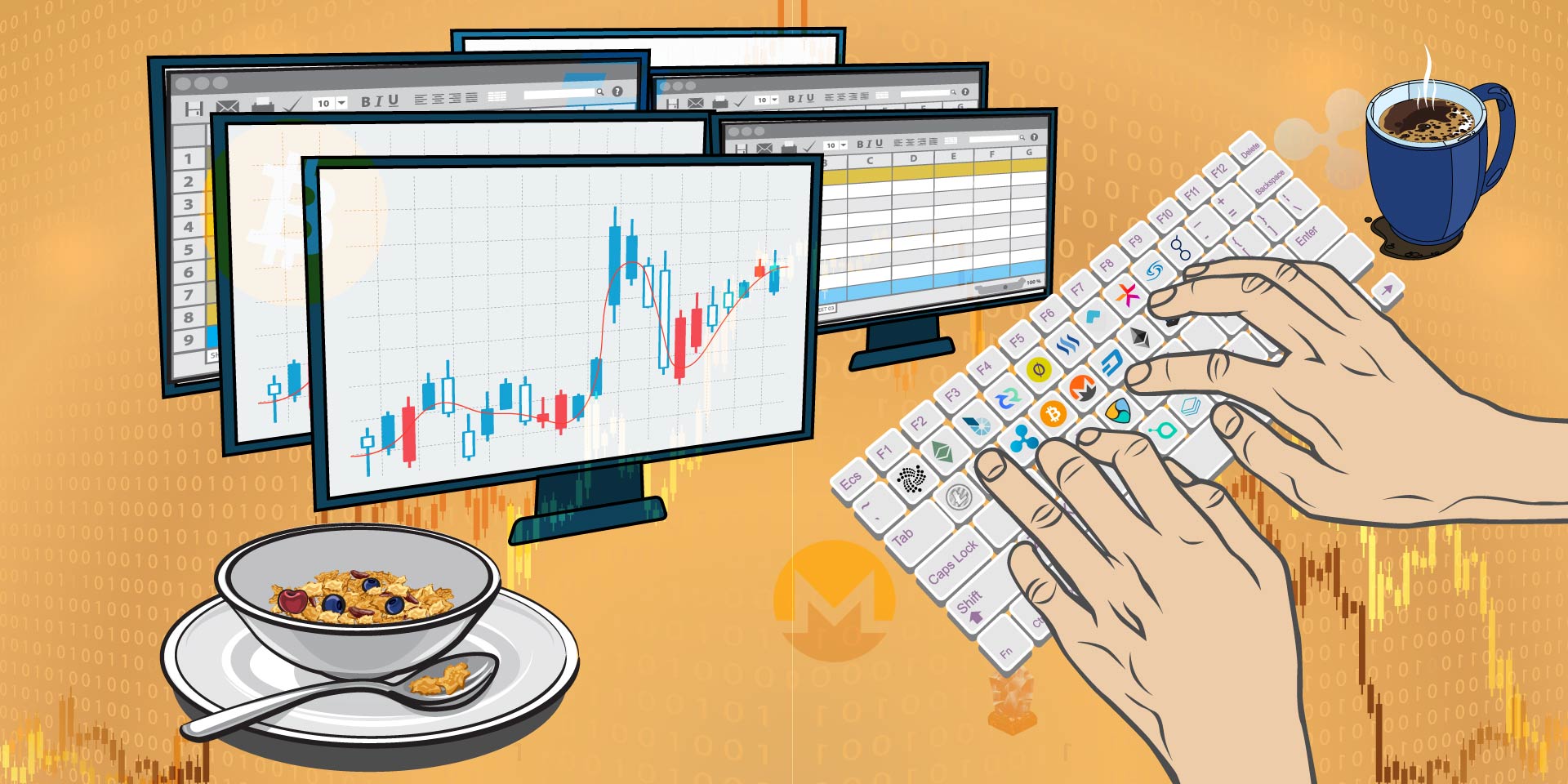 The day starts with the four screens on his home-office wall coming to life. Charts, news feeds, and cryptocurrency market prices. The peak of trading in the US is over, the Chinese and Japanese markets are up and about, and the Indian markets are about to get active.