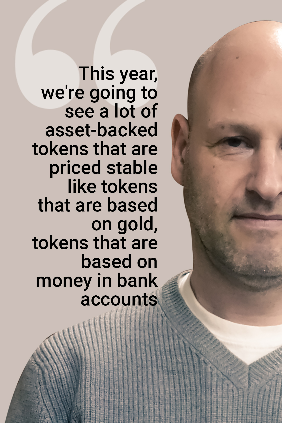 This year, we’re going to see a lot of asset-backed tokens that are priced stable like tokens that are based on gold, tokens that are based on money in bank accounts… It’s like building layers and layers of fundamental infrastructure. If you get to the point where you have a price stable token, something that represents the U.S. dollar or something like that, it’ll make it much easier for us to offer music on our UJO music platform and stuff like that. So, it’s going to again grow exponentially at the application layer. We’re going to see a takeoff at some point soon where there are just all these really useful pieces that people can piece together into sophisticated applications.