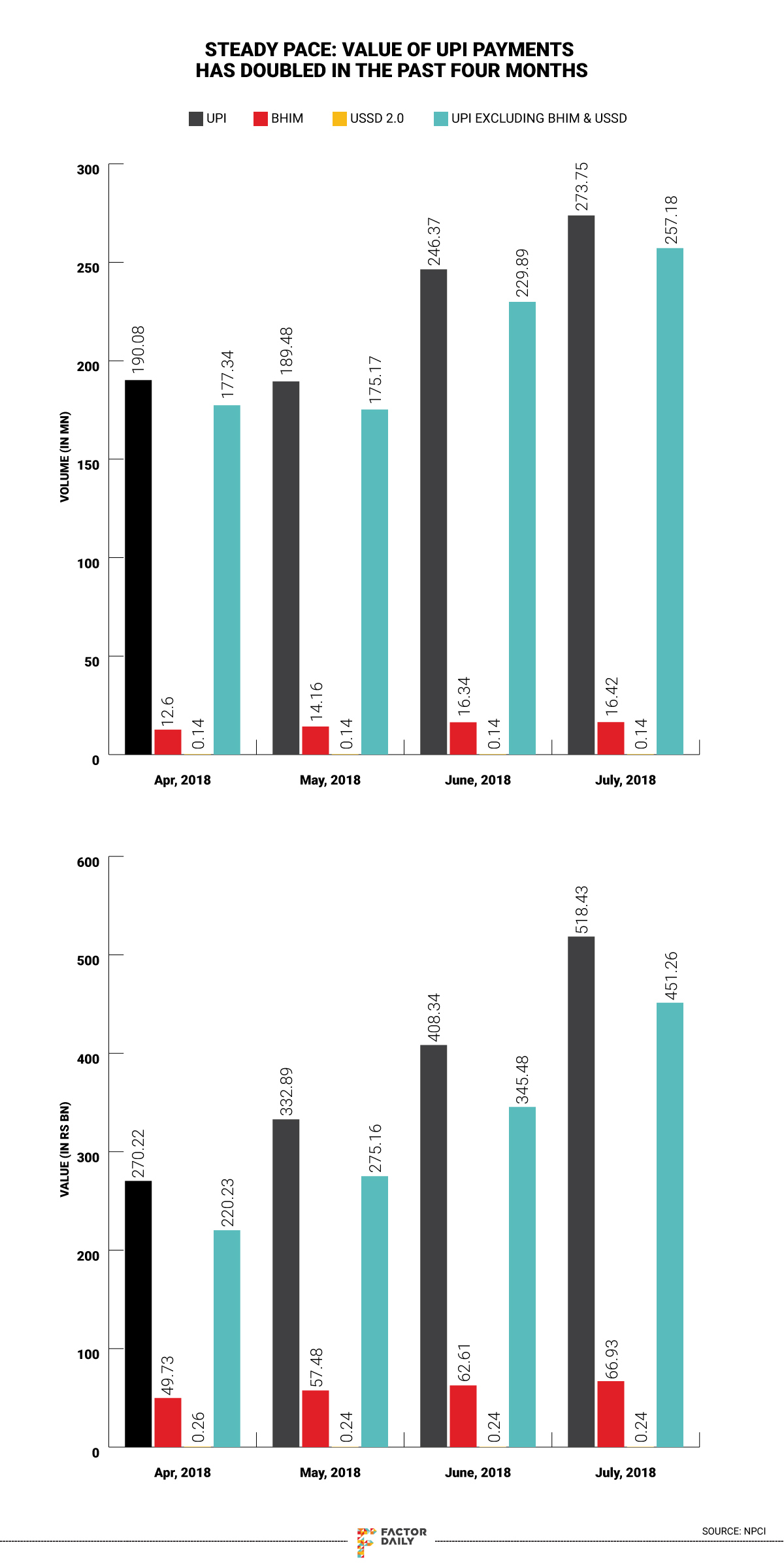 Updated at 08:35 am on August 29, 2018  to add a percentage figure for UPI transactions as a part of overall electronic payment systems in India. Also, added a snippet for the story.