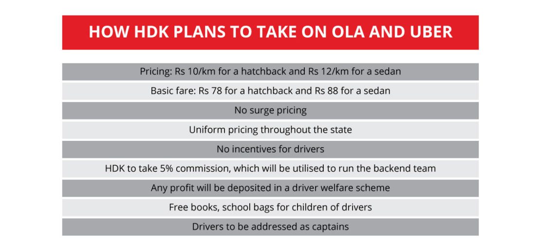HDK plans to take just 5% commission, compared to the 25-30% taken by Uber and Ola, and the company says its not looking to make profits, unlike the market leaders. The commission will be used to run the backend team and any profits will be deposited in a driver welfare scheme.