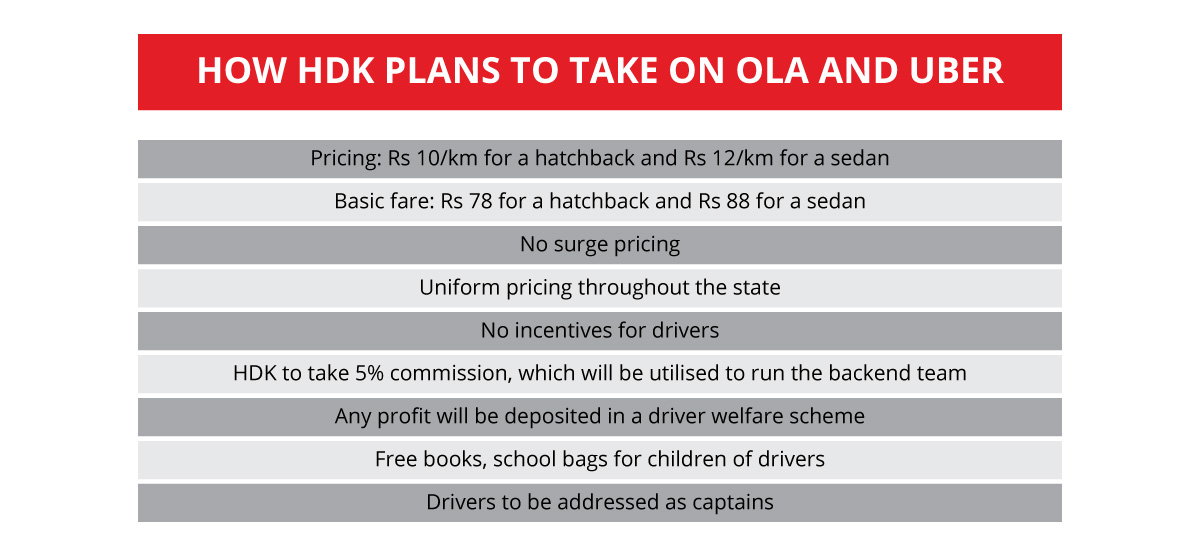 Sridhar Pabbisetty, the CEO of advocacy and activist organisation Namma Bengaluru Foundation, said: “Kumaraswamy has been pretty open about the fact that the venture (HDK Cabs) will bring him benefits politically.”