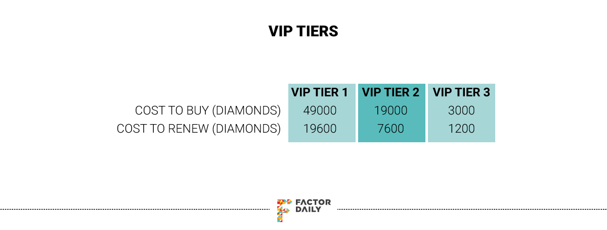 These screengrabs show the lowest of the three tiers and the ways it lets the VIP stand out