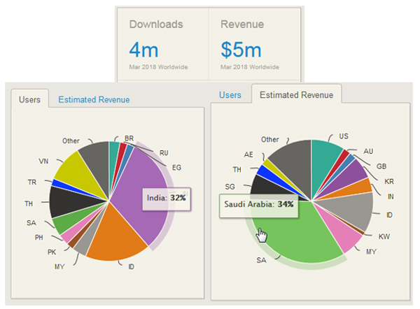 And yet, Bigo sits comfortably in the top-10 grossing lists in India and other countries (Singapore, Saudi Arabia, Indonesia). In March 2018 alone Bigo was downloaded over 4 million times and grossed $8m worldwide.