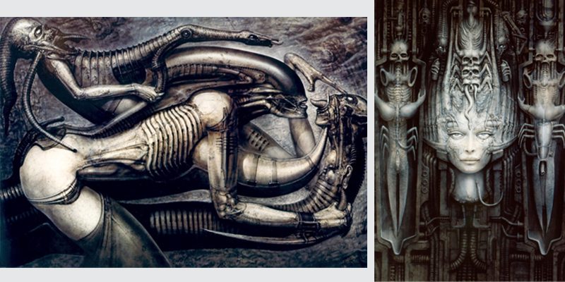 The influence of his ‘biomechanical’ aesthetic has influenced everything from creatures like Predator and the Sentinels in Matrix to the aliens in The Avengers. It can be seen in Hellraiser and the cyberpunk works of William Gibson.