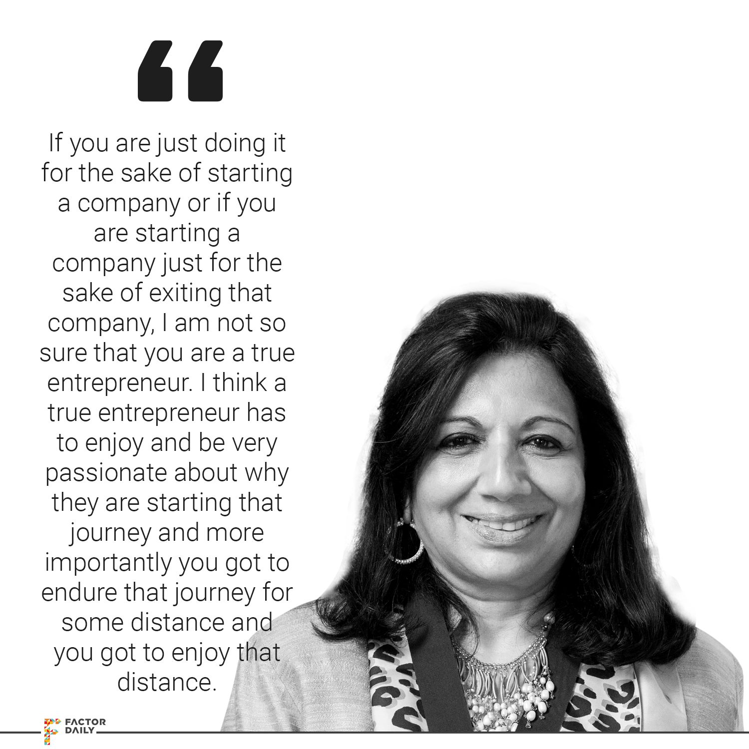 Kiran: Yes, so the first thing is, every entrepreneur must be very, very passionate about what they are doing. You know you have to be interested in what you are trying to pursue. Yesterday, I went for the inauguration of the Padukone-Dravid Centre of Sports Excellence and the young entrepreneur Vivek Rao who started this enterprise, he is so passionate about sports that I am sure that he’ll go a long way. You got to believe, you have got to enjoy what you are doing. If you are just doing it for the sake of starting a company or if you are starting a company just for the sake of exiting that company, I am not so sure that you are a true entrepreneur. I think a true entrepreneur has to enjoy and be very passionate about why they are starting that journey and more importantly you got to endure that journey for some distance and you got to enjoy that distance and it’s going to be full of challenges.