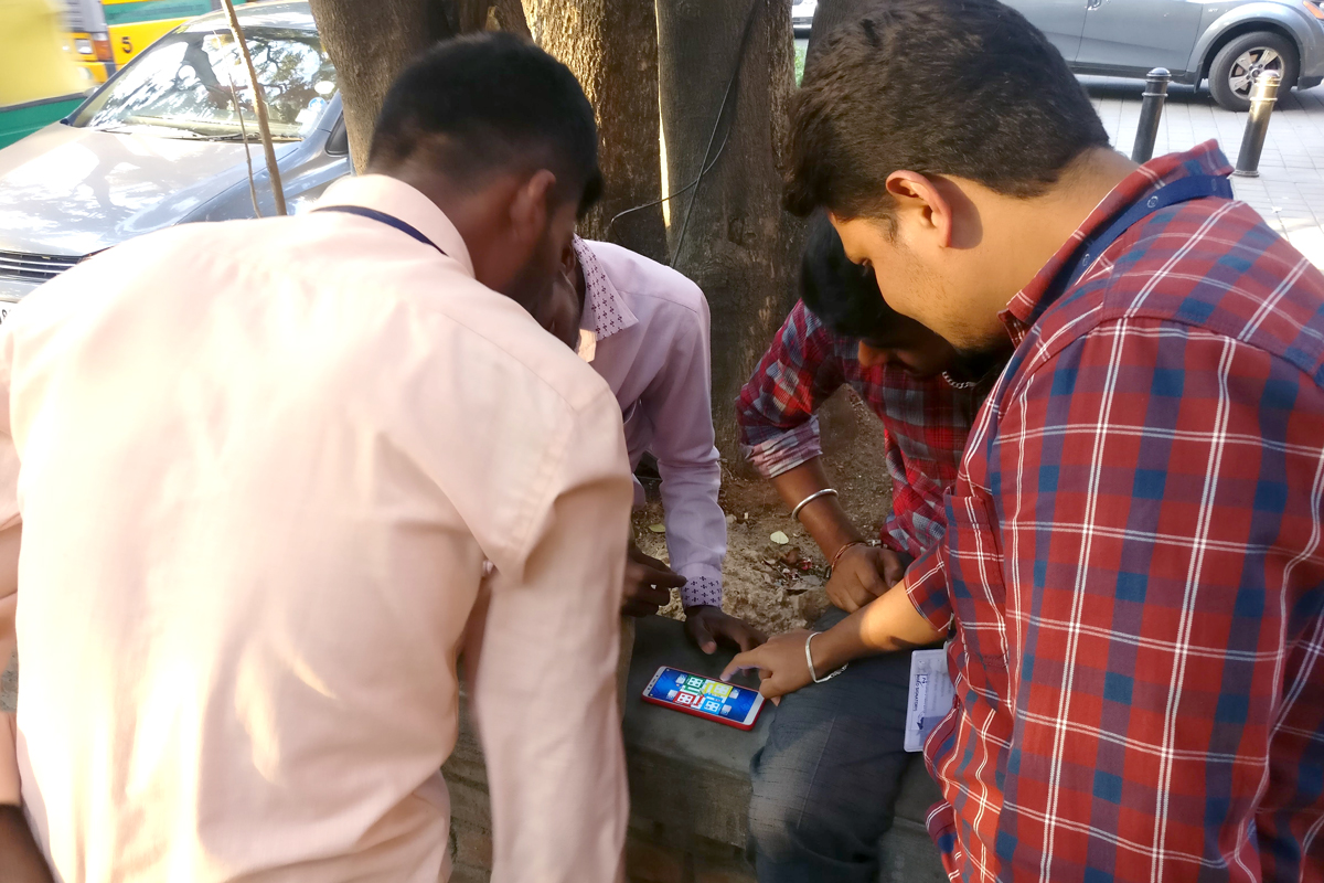 Time: 4 pm. It is tea time for Bhargav Gowda and friends. They’ve huddled under a tree on the lavish sidewalk in front of Central Mall in Bengaluru. A game of Ludo is on. Gowda, in his late 20s, has grown suspicious of me looking over his shoulder so I quickly volunteer that I’m a reporter and ask if I can take a picture. They’re happy to pose for me.