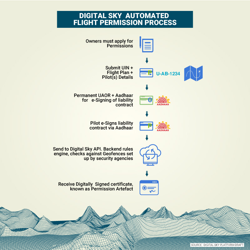 The digital sky program is designed to automate the entire chain of permissions required to own and operate a drone or drone service in India starting from registration of the UAV to planning and flying them — obviating the need for a large volume of paperwork.