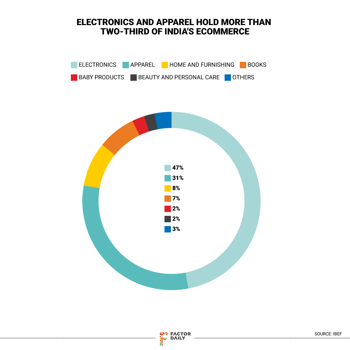While Flipkart and Amazon have over 75% market share, there is a long-tail of ecommerce companies in India – many of whom are vertical players. Nykaa is a leader in beauty care, BigBasket specialised in grocery, Lenskart deals in eyewear, Pepperfry is a furniture retailer, Teabox is all about teas, Clovia sells lingerie, and Netmeds sells medicines online.