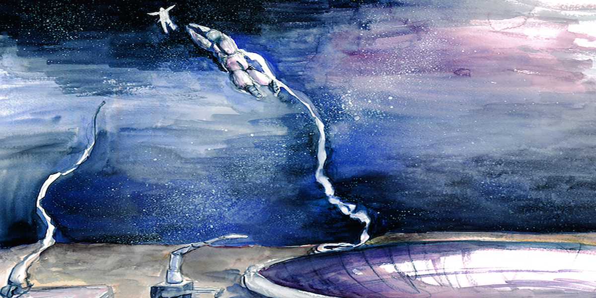 Lead image: An illustration from the book by Haylee Bollinger for James Cambias' story, Periapsis, which portrays life on Deimos, the near-zero-gravity moon of Mars and asks 'what will teen love be with hormone regulators and augmented reality implants?'