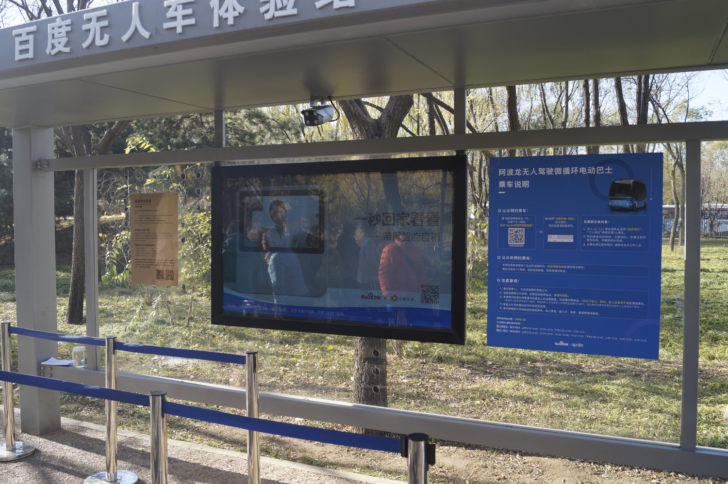 Installations by Chinese technology giant Baidu show off some of its latest tech in the park. The main attraction here for me was an autonomous bus called Apollo developed by Baidu. You could get a free ride on it. It would be my first on an autonomous vehicle if you discount the rides I’ve taken on buses back in Kerala that I suspect drive themselves at times.