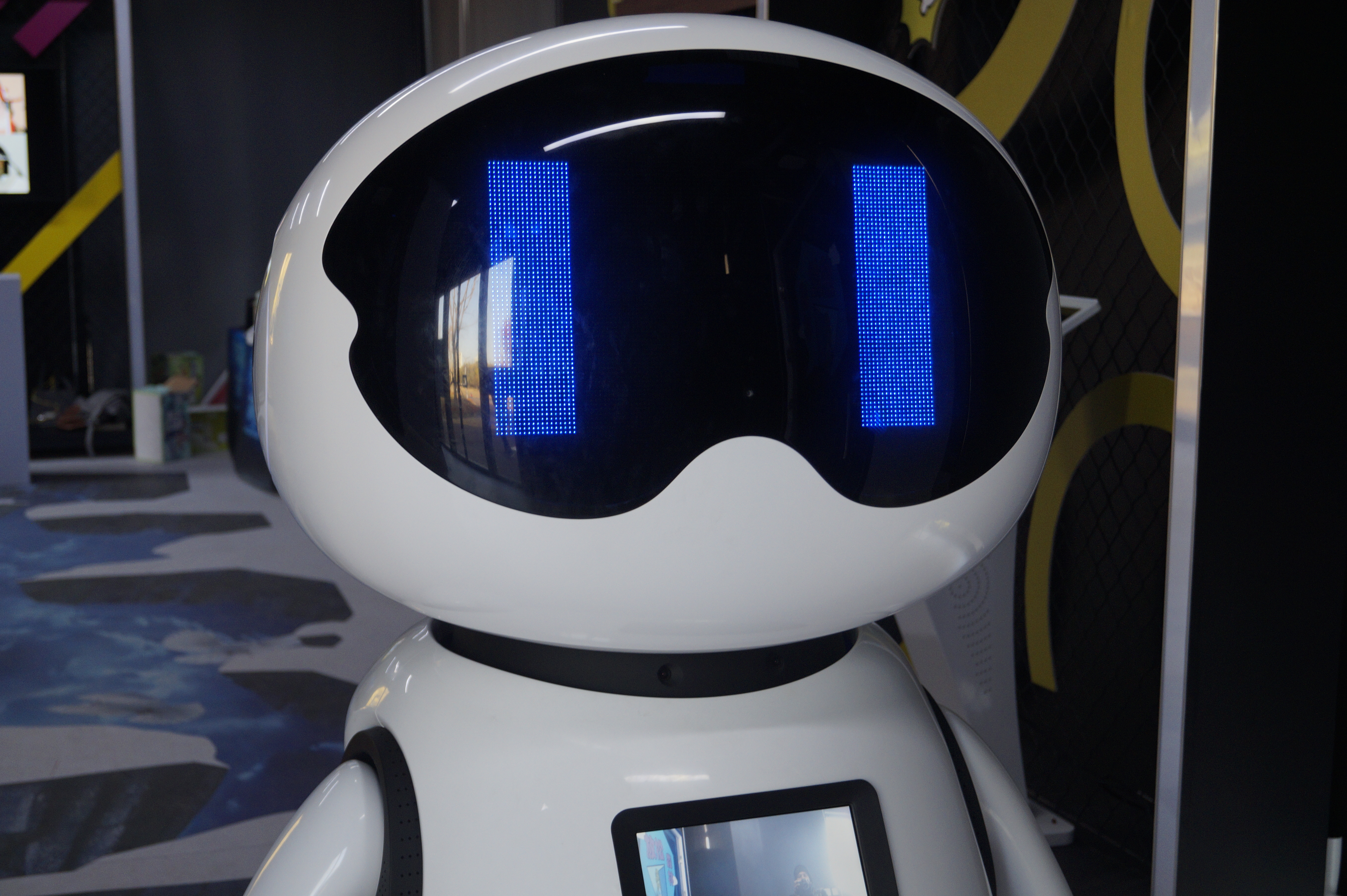 Access to the white building is gated with a face recognition system. A vending machine sits in front of the building. The automat runs on face recognition. Once inside, you’ll see some virtual reality gear, a walking, talking robot which looks a bit like R2D2 from Star Wars, more screens and cameras that can track your moves.