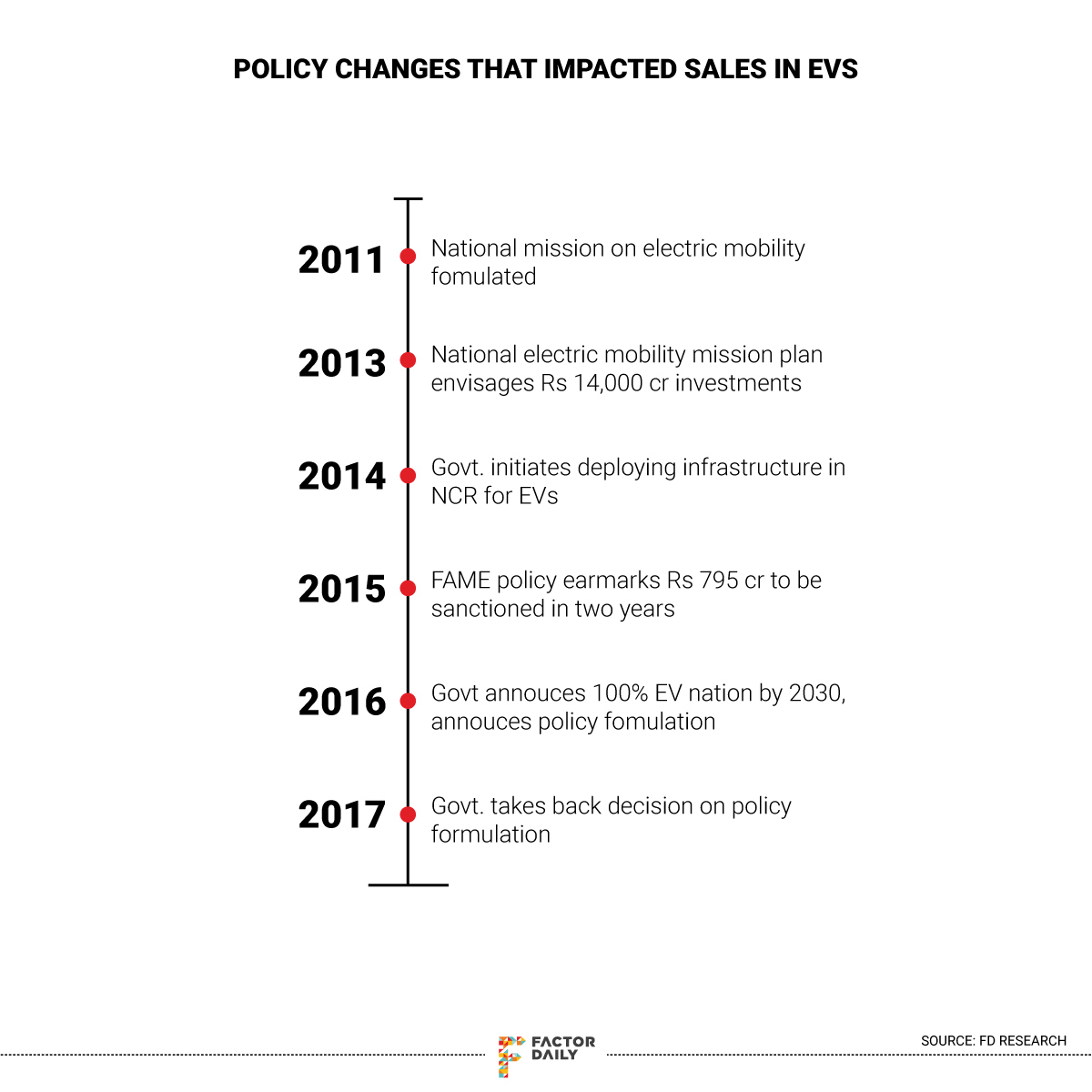 In 2016, EVs became a mainstream topic of discussion among carmakers, industry lobbies and the government as the Narendra Modi government strongly pitched for EVs. In March 2016, Piyush Goyal, then the minister of power, had said that by 2030 India could be a 100% EV nation. He even talked about zero down payments for EVs and special subsidies.