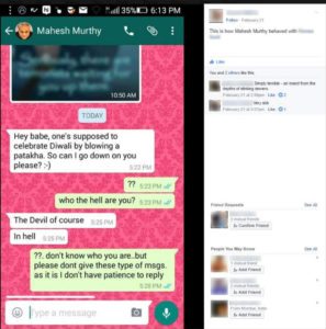 A few months prior to that, the officer told author Bansal on phone that Murthy had connected with her on Facebook. FactorDaily has reviewed this conversation and has independently spoken with the officer. Her experience has been put up by a friend on Facebook, where she has commented on it, too. But she requested her name be not used in this report.