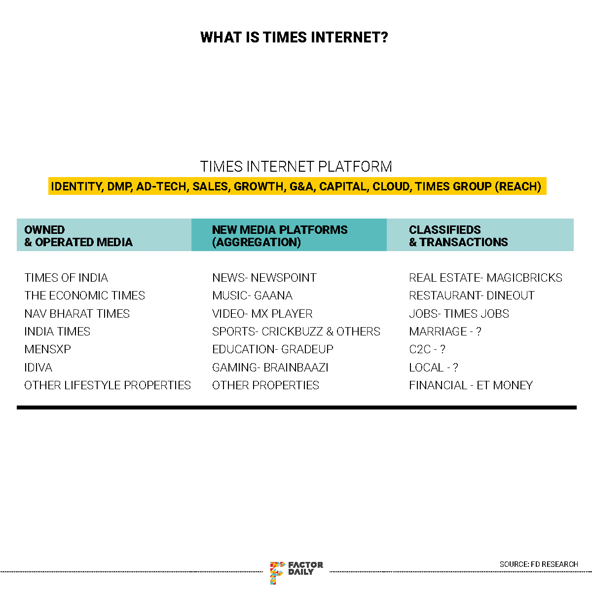 Company executives largely see it as plugging a gaping hole in its portfolio. If you look at the figure below, you’ll see that the Times Internet Platform is split across three core sections– owned and operated media, new media platforms and classifieds and transactions. Within new media, the group already runs NewsPoint for news, Gaana for music and various other apps. Video, was a large, untapped opportunity in the company’s bouquet as its earlier attempt at the segment with BoxTV wasn’t a winner.