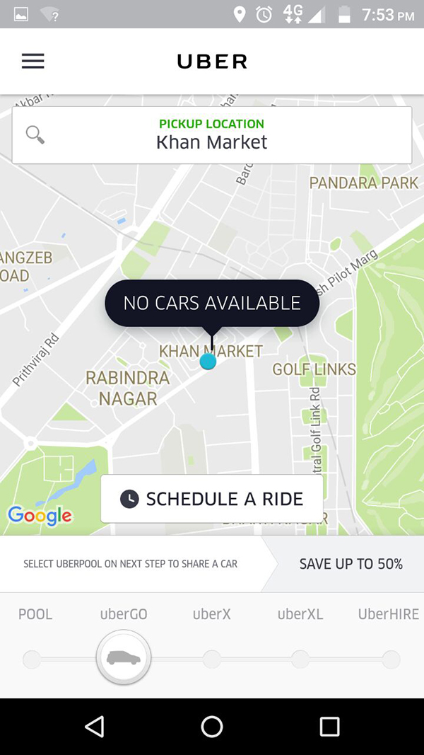 It was nearly impossible through most of Monday — even at time of publishing this story late evening — to hail an Uber or Ola cab in the capital. The wait time showing on the apps was around 20-25 minutes and fares nearly double the normal rate owing to the scarcity. Most attempts at booking a cab result in a ‘No cabs available’ message.