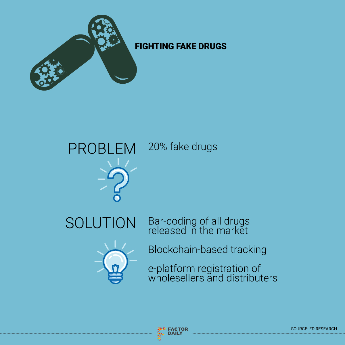 The first source explained the plan: “Every time the medicine changes hands, the unique number (generated at the manufacturing stage) is tracked. When the consumer gets the drug there is a QR code or a barcode on it… you can open up an app, and you can check the entire details of where it was manufactured and all the places where it exchanged hands to travel to the shop.”