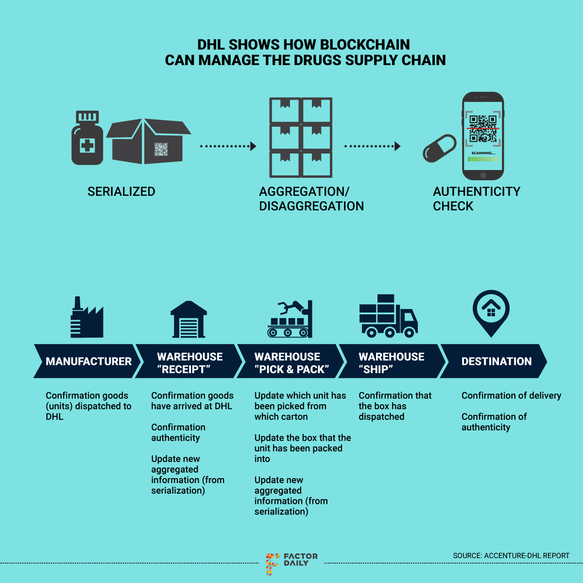 It’s too early to divulge everything as the proof of concept is not yet over. However, a good way to understand how it will work is to look at the graphic below that shows how DHL plans to use the Blockchain. Counterfeiting is not only an Indian problem: globally more than a million people die every year after consuming fake medicines.