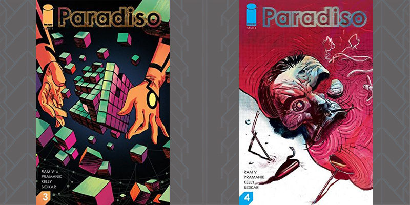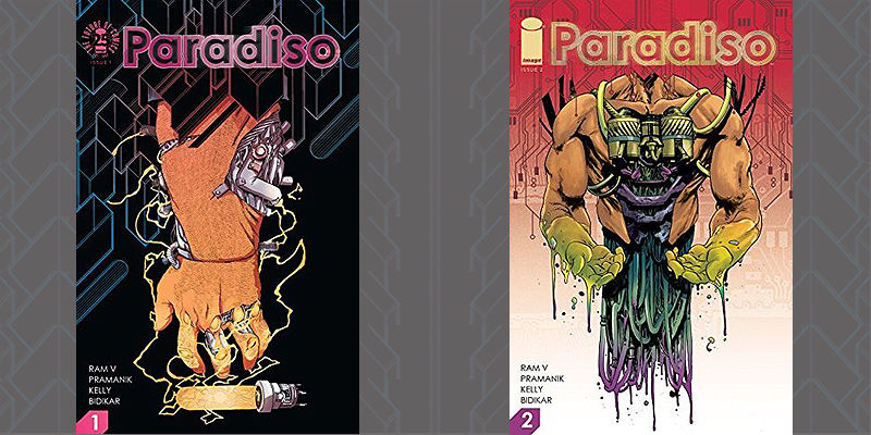 It is not often you see good science fiction from Indian comic creators. And almost never, to see a trade paperback from Image Comics bearing the name of three Indians on its cover, as Paradiso does: Ram V, the writer, artist Dev Pramanik, and letterer Aditya Bidikar. There is a fourth name too, Dearbhla Kelly who did the fabulous colours for this comic book. Ram V is a familiar name for Indian comic book readers having worked on Holy Cow’s Aghori with Vivek Goel, and Black Mumba, the noir comic set in Mumbai that also featured Pramanik and Bidikar. Together with Kelly, these three put their best foot forward with Paradiso to deliver an engaging and enjoyable narrative in its first arc. As fully formed as the world of Paradiso is, one suspects that the creators have barely begun to scratch the surface of the larger story, and even with all that happens in Volume 1, have given us but a peek, albeit detailed, of what’s in store.