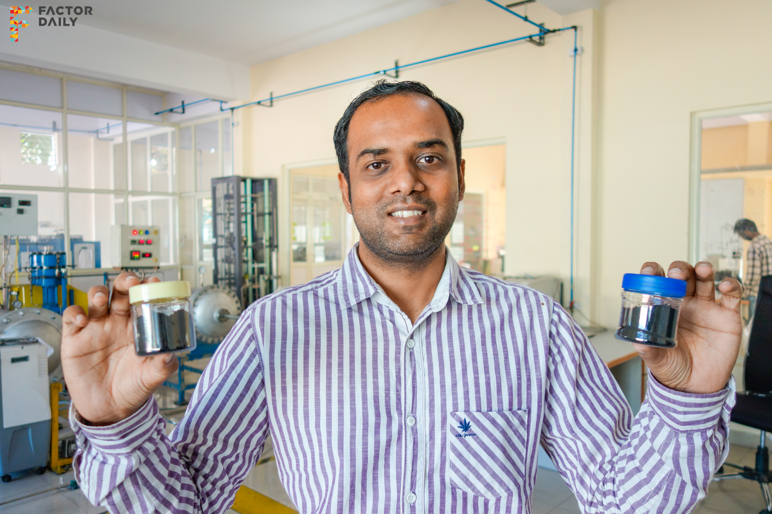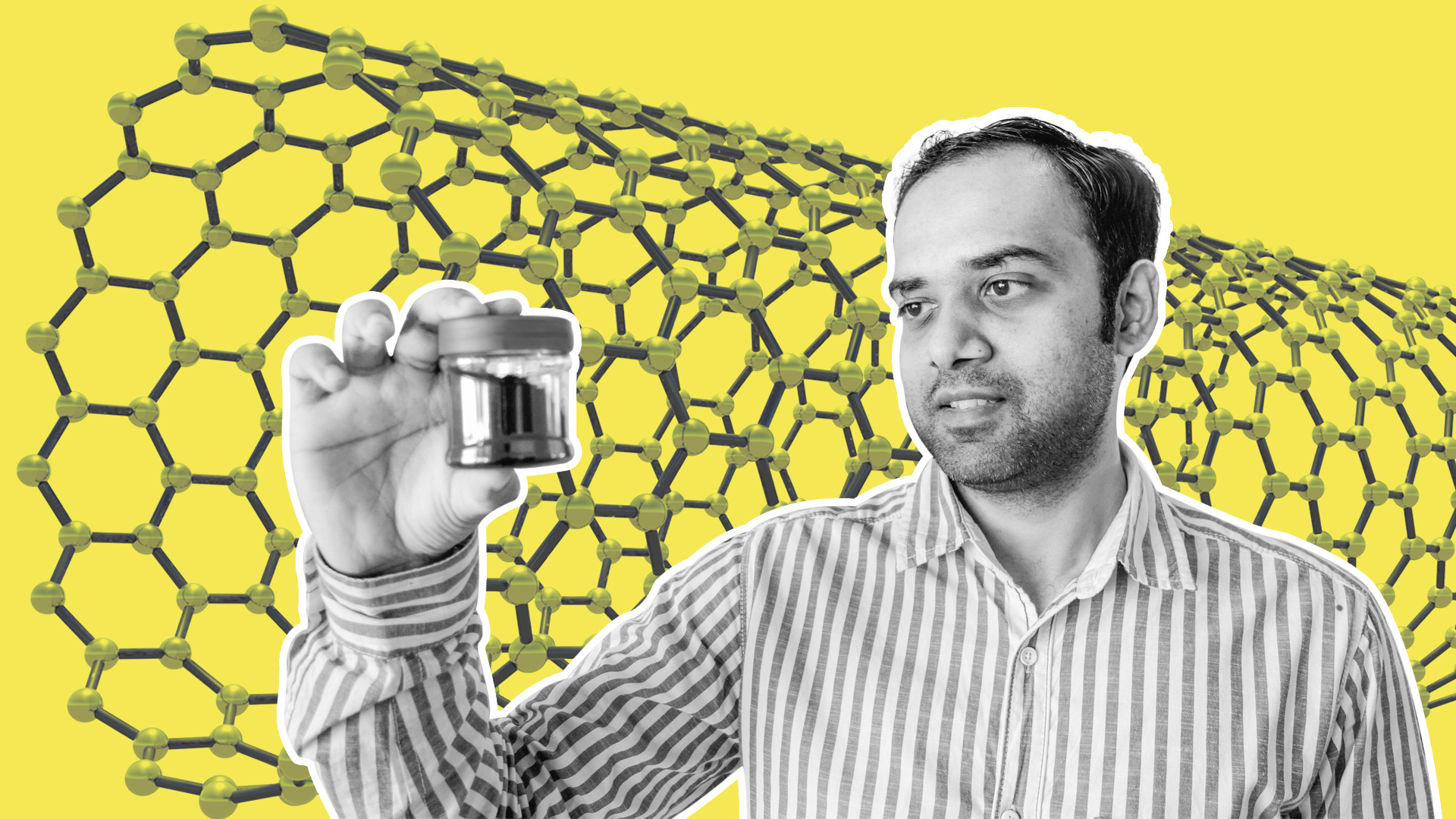 Gadhadar Reddy, the co-founder of NoPo Nanotechnologies with carbon nanotubes manufactured at the facility in Electronic City, Bengaluru. Photo: Jayadevan PK| FactorDaily