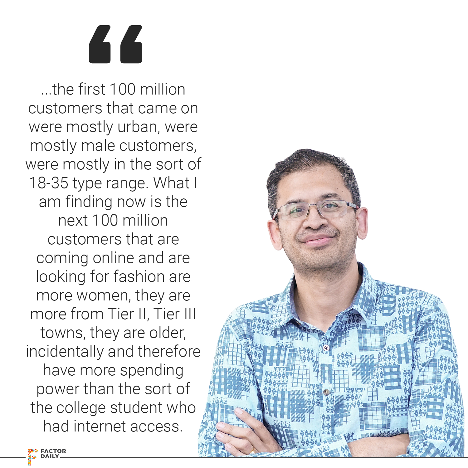 Ananth: I think there are many, I mean we could have an entire conversation around the Indian fashion consumer but I will give you a couple of things. The first myth is that people in Tier II and Tier III towns shop very differently from people in Tier I towns. Actually the internet is the great leveller. In my view, the people with consumer internet access across towns shop very similarly. Our basket size and our brand mix is no different in a Tier II town, Tier III town than it is in the top 20 cities. That at least I found quite surprising.