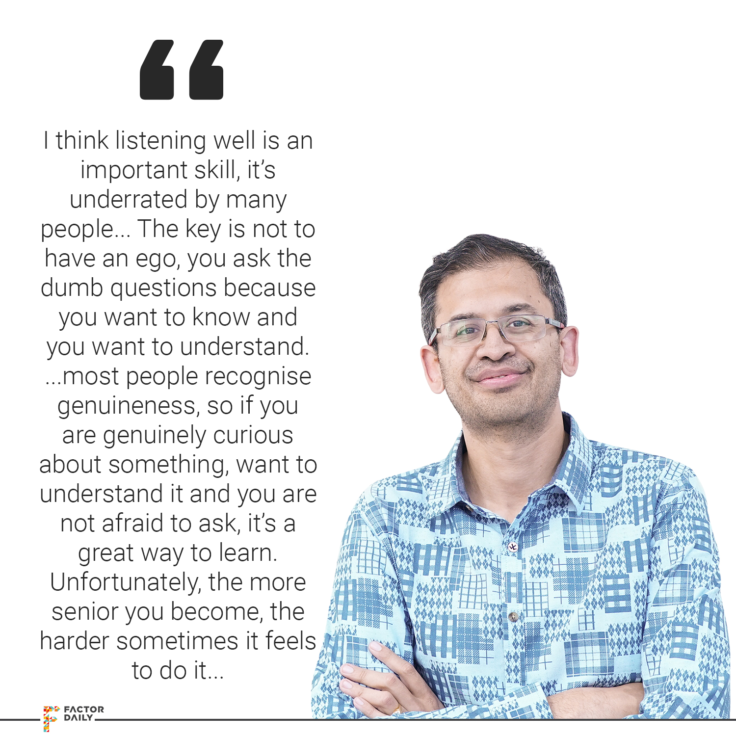 Ananth: I think one is by talking to a lot of people in that particular space and listening well. I think listening well is an important skill, it’s underrated by many people but if you actually listen and you spend your first month talking to a lots of people and listening, you very quickly come up to speed with what’s working and also what the real problems are. And if you actually listen well, people will open up and talk to you about it. I think that’s one.