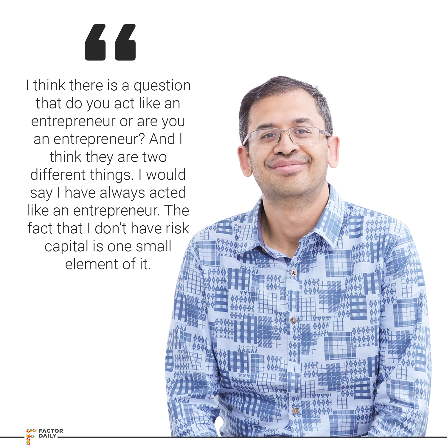 Ananth: I would say that separated into two things. I think there is a question that do you act like an entrepreneur or are you an entrepreneur? And I think they are two different things. I would say I have always acted like an entrepreneur. The fact that I don’t have risk capital is one small element of it. But in all of the businesses like the ones in Myntra or Jabong, if you run it, you have to treat it like your own business, you have to treat like you own the business and that you are risking your business every time.