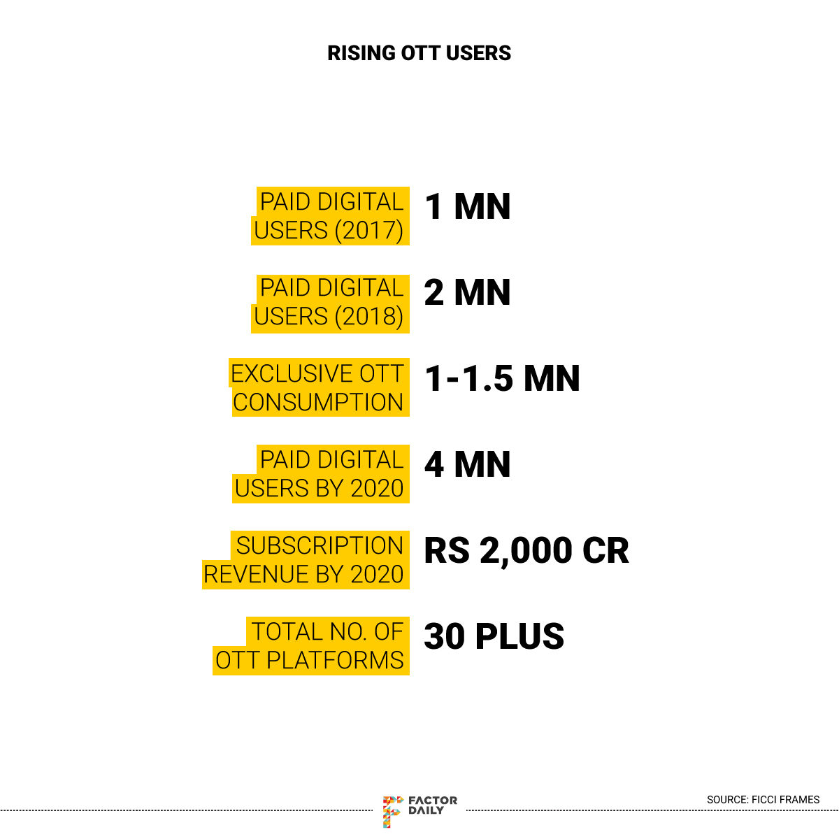 Why not? According to Media Partners Asia, India’s digital video market is $700 million, which is to more than triple to $2.4 billion by 2023. As per the latest FICCI Frames Study, there are around two million paid digital subscribers across application providers including video platforms, and 1-1.5 million customers who have moved entirely to digital media. The number of people using only digital platforms is expected to burgeon to four million by 2020, and subscription revenue is expected to cross Rs 200 crore.