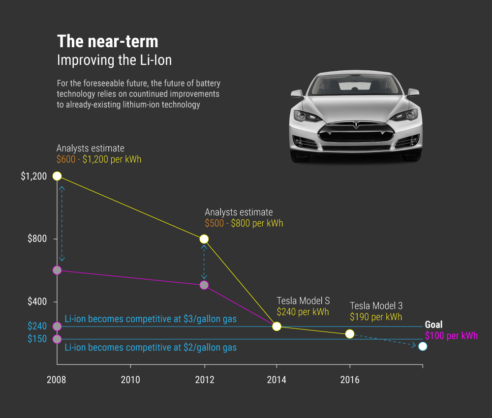 Back in 2011, Li-ion batteries cost around $600 per KWh to produce but with improvements in battery technology, this cost has substantially come down. Today, batteries around $200 per KWh. Tesla claims that the Tesla Model 3 battery comes at a cost below the $190 per KWh mark.