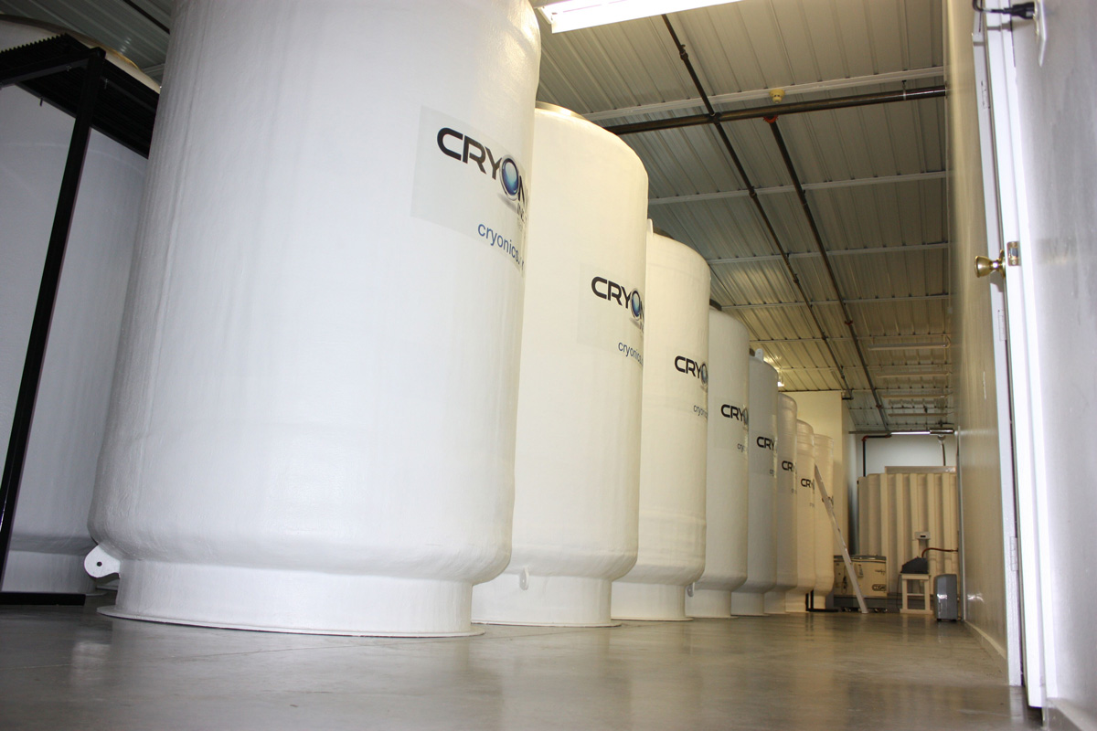 Getting cryonically frozen is tricky business. After the legal death of a registered client, the facility has to get their emergency Swat team on site and cool down the body before the brain dies. Once transported to the facility, all the water is removed and body is pumped up with antifreeze and then the temperature is dropped to -196 centigrade. Eventually, the clients lie in tanks of liquid nitrogen until they can be revived.