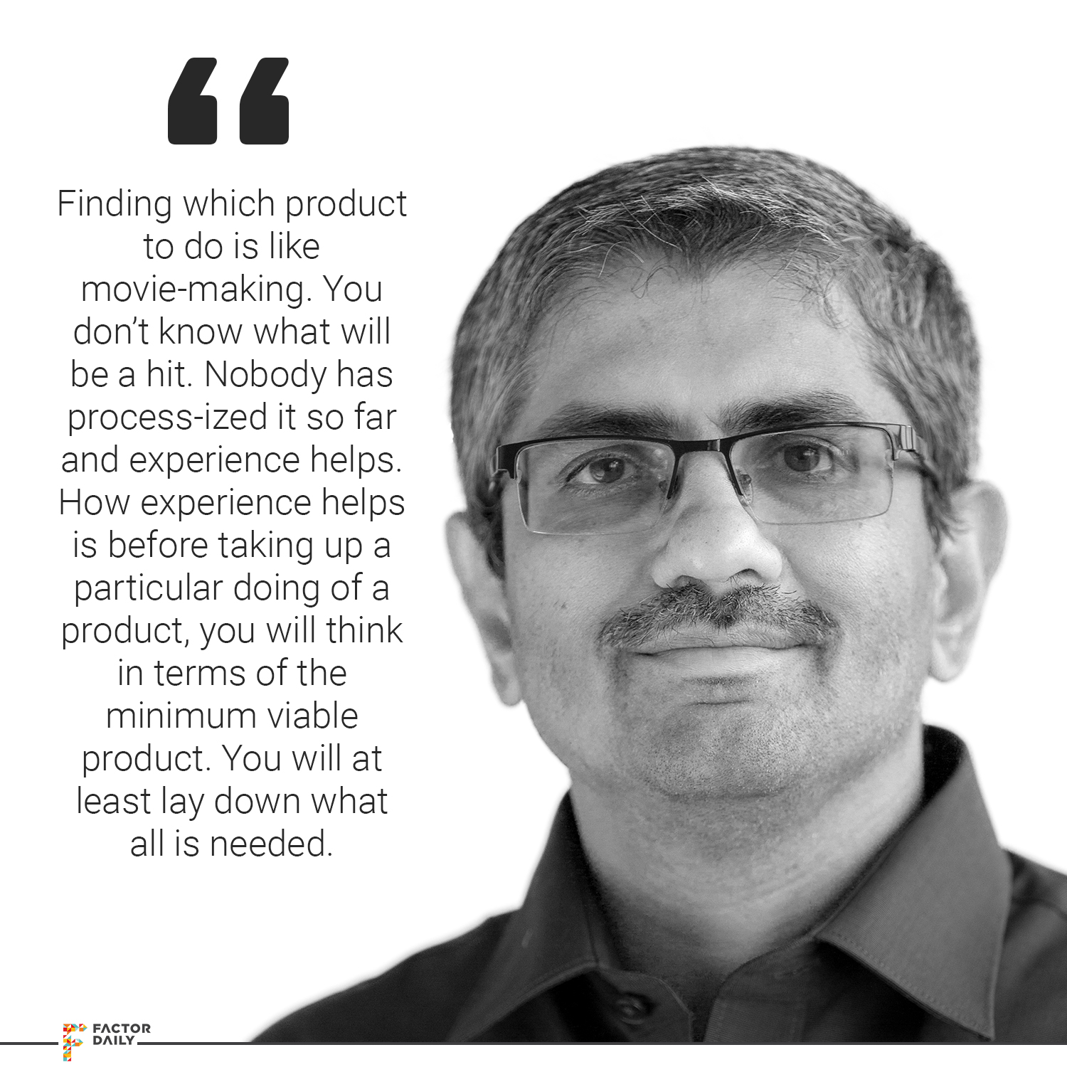 Shailesh: I would put it this way, finding which product to do is like movie-making only, you don’t know what will be a hit, what will not. Nobody has process-ized it so far and experience helps. How experience helps is before taking up a particular doing of a product, you will think in terms of working. What is the minimum viable product I should build before it hits the market? Now, what is the marketing thing I should do? So all these you will start thinking before when you are experienced. If you are not experienced, you will just jump into something and you will just do it and as they say, you will build it and hope for the customer to arrive. Then customers won’t come but given that you are in this business of startup and you have the nature of hustling, you will figure out your way. Then you will see that that competition is doing this kind of marketing or another friendly startup is doing this way of a podcast, whatever. Then you will figure it out and do it. But experience helps in the sense, you will at least lay down what all is needed to do that, but which product to do is an art of movie-making.
