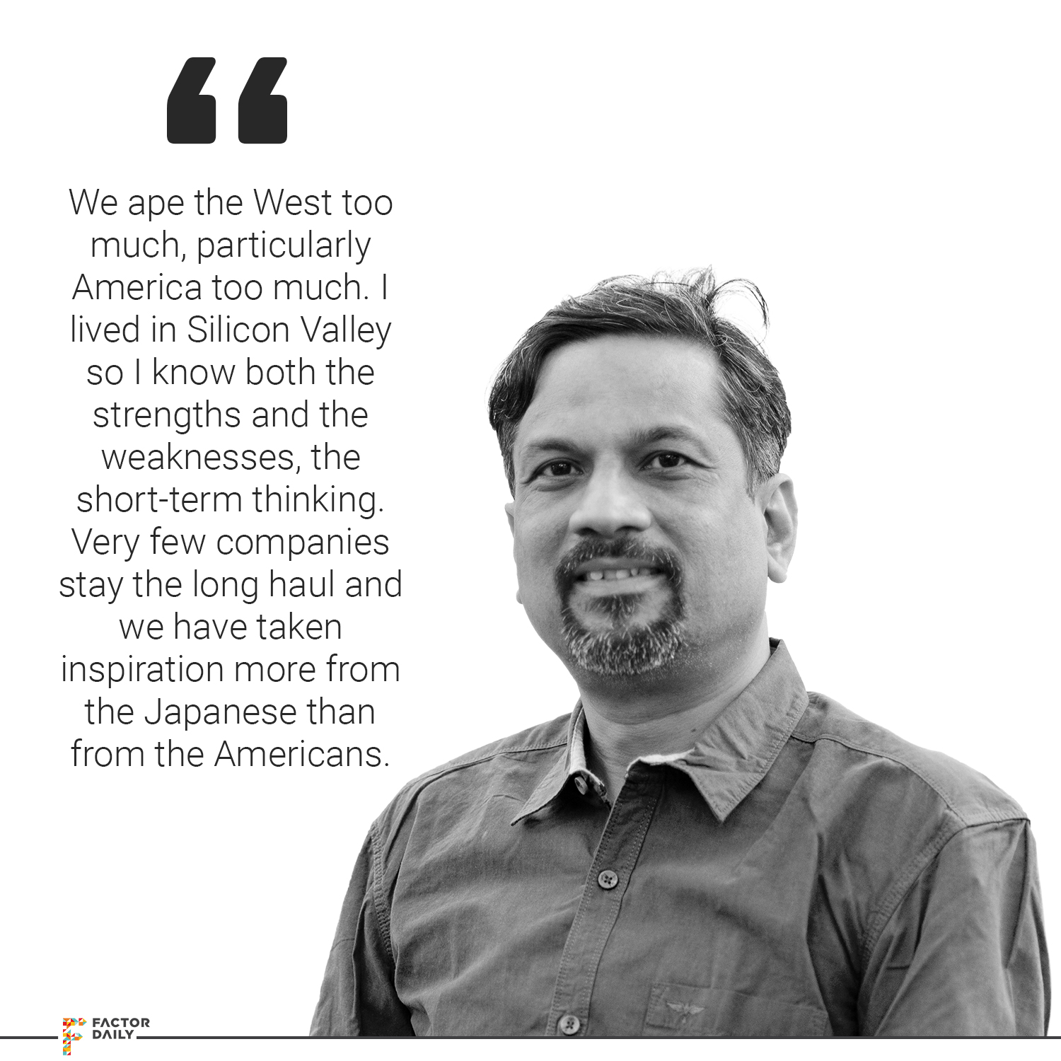 In India, in my opinion, we ape the West too much, particularly America too much. I lived in Silicon Valley so I know both the strengths and the weaknesses. The weaknesses, the short-termist thinking. Very few companies stay the long haul and we have taken more inspiration from the Japanese on these than from the Americans, in this particular area.