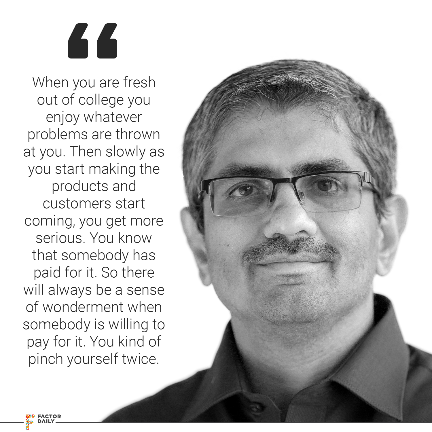 Shailesh: You could take any room, put a set of charts, put some tables, put some computers and then you have the startup going. So we had actually done this atop Sridhar’s father’s house and then the usual troubles like dial-up links and ISDN links and all that. So we had our share of it. But in all this, we just went through it because we were fresh out of college and you are enjoying whatever problems are thrown at you. Then slowly as you start making the products and putting it out and customers start coming in, you kind of get more serious and then you know that somebody has paid for it. So that will always be a sense of wonderment when somebody is willing to pay for it, you kind of pinch yourself twice.