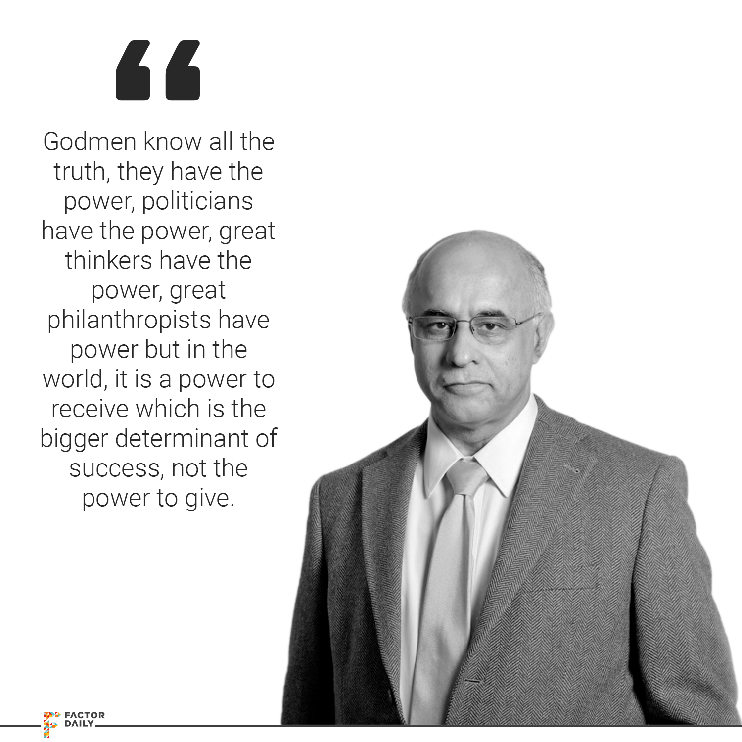 Subroto: I have something very huge to tell. I have something which is very significant. Godmen know all the truth, they have the power, politicians have the power, great thinkers have the power, great philanthropists have power but in the world, it is a power to receive which is the bigger determinant of success, not the power to give.