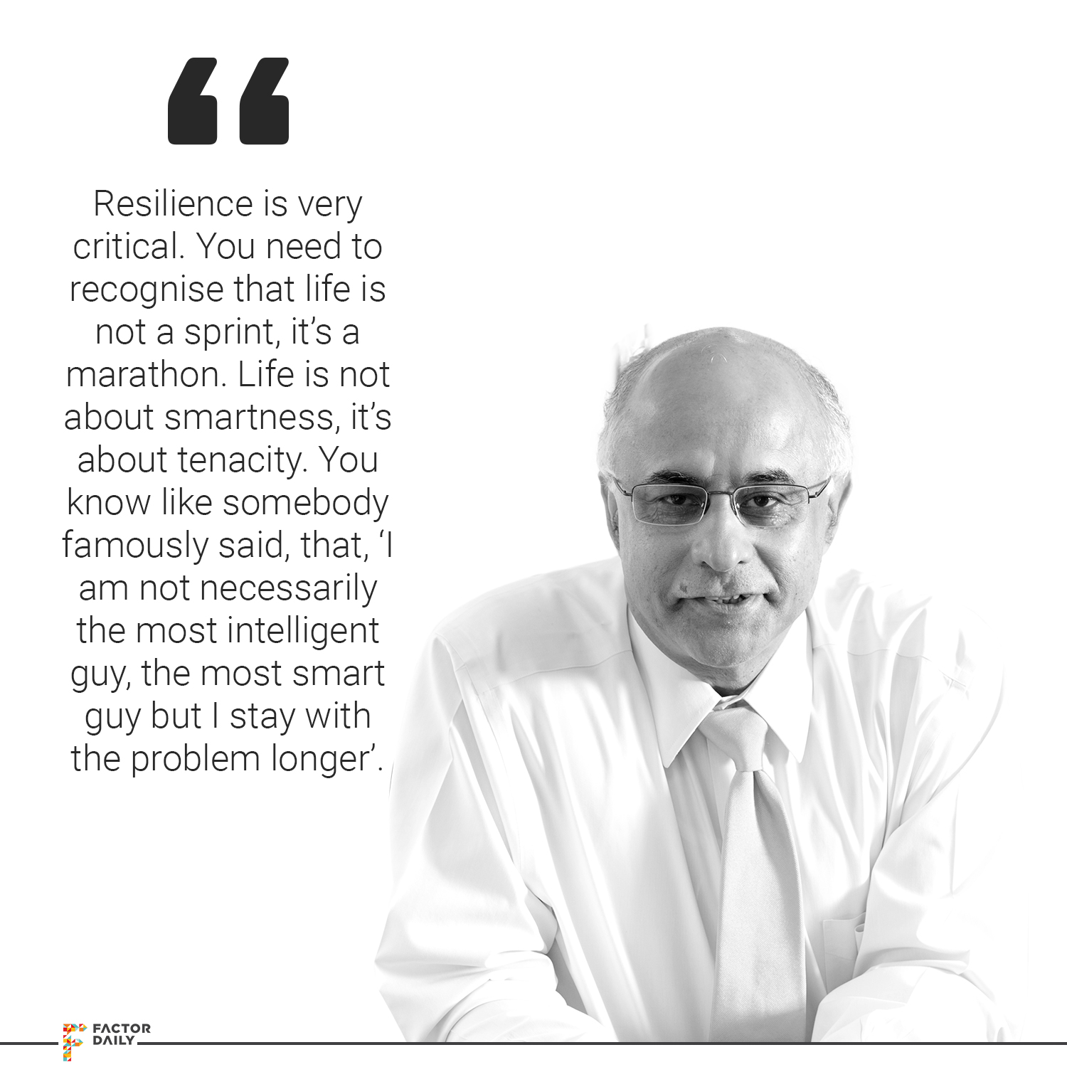 Subroto: Oh my god! You know, first, resilience is very critical. You need to recognise that life is not a sprint, it’s a marathon. Life is not about smartness, it’s about tenacity. You know like somebody famously said, that, ‘I am not necessarily the most intelligent guy, the most smart guy but I stay with the problem longer’. So when I look at most great people that I know, have come close to, I have seen from a distance, they are not necessarily the greatest people on earth but they stay with the problem longer. So, sometimes you can’t solve a problem but very smart, competent, capable guy will either give up, get frustrated, blame the system, kick the job, go away and the dumb guy in class will just sleep overnight and next morning is a different morning. It is important to be resilient in your profession, in your career, in your relationships. So, do you want to call off the friendship tonight, do you want to break the love affair tonight, do you want to break the marriage tonight or just want to sleep over it?