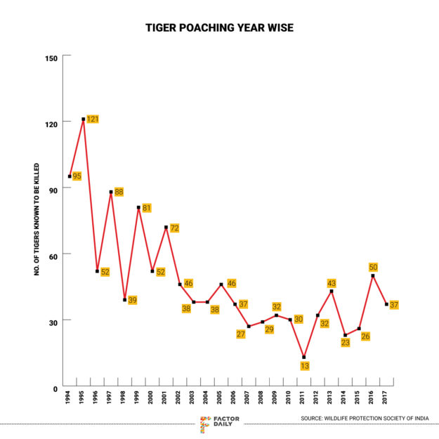 In March 2016, the Uttarakhand police seized five tiger skins in Haridwar. The divisional forest officer of Haridwar called up Jhala’s colleague Bivash Pandav, who worked at the adjacent Rajaji National Park.